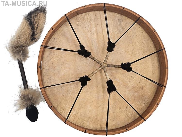 Мастеровой бубен диаметром 60 см, материал дерево и кожаная мембрана.